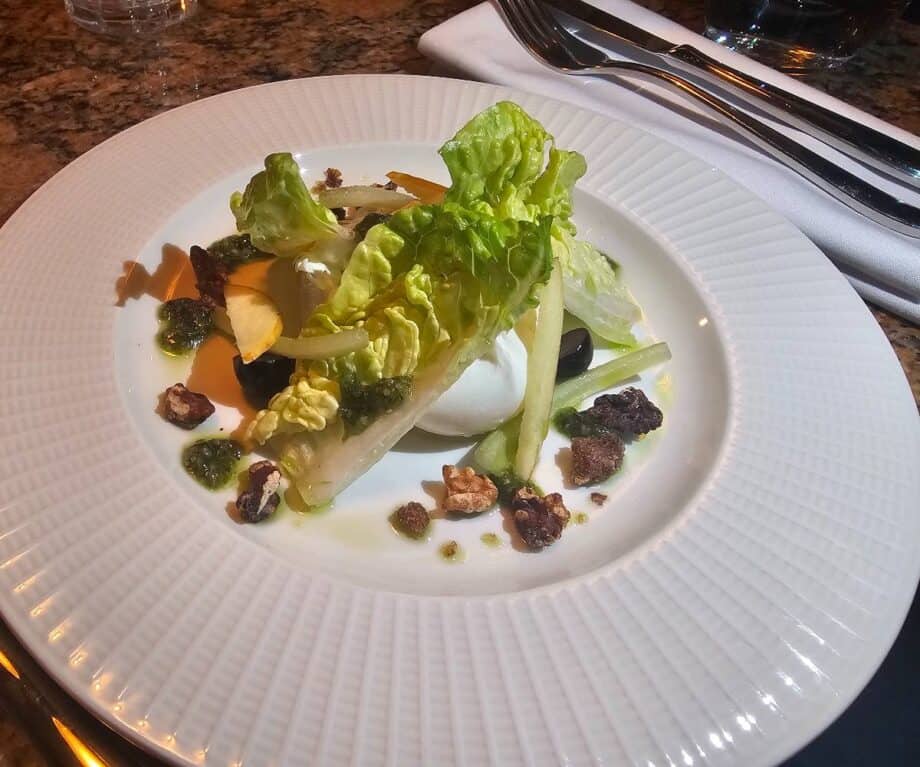 The pan-roasted scallop with pork belly, cauliflower and Lindisfarne mead narrowly got my vote over the Craster smoked fish terrine with horseradish, cucumber and dill, whilst my wife’s burrata with Waldorf salad and Arbequina olive oil won her approval.