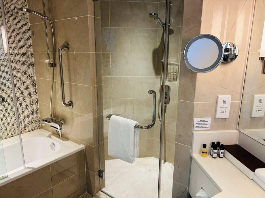 Pharmacopia’s argan-oil-based toiletries are provided for both the separate bath and shower, creating a tone of indulgence.