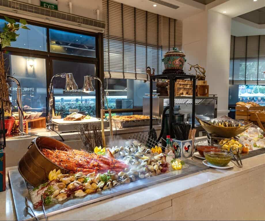 In the evening, the buffet becomes a gentle introduction to local cuisine: oysters, scallops and clams laid on ice; laksa fragrant with spice; rich beef rendang; and the traditional ayam buah keluak. For less adventurous eaters, familiar international classics are always on hand.