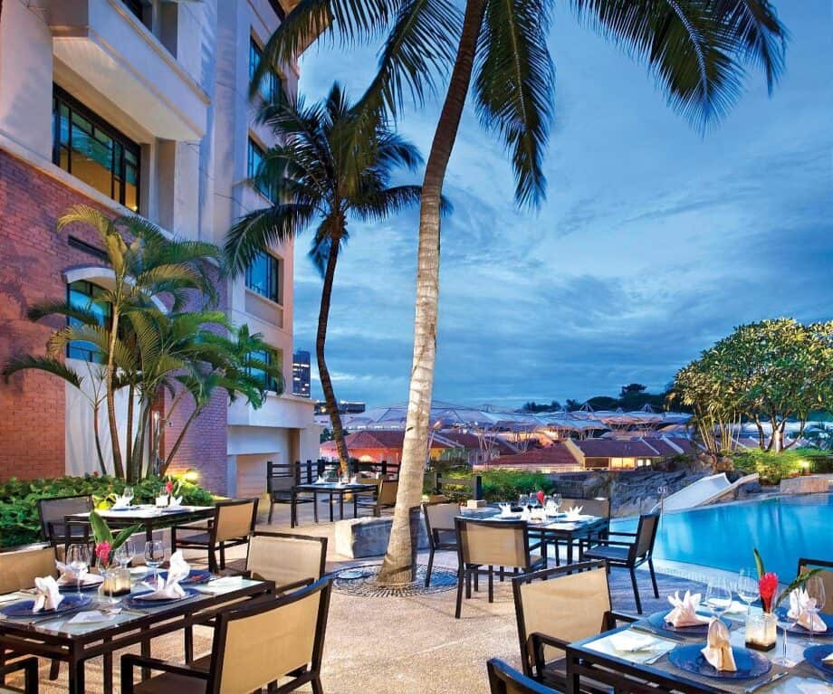 Perched on the pool deck, Blue Potato leans towards a Western, grill-focused menu. With its open-air setting and dramatic backdrop, it’s hard to imagine a more atmospheric spot in Singapore for a grilled tenderloin or crisp fish and chips.