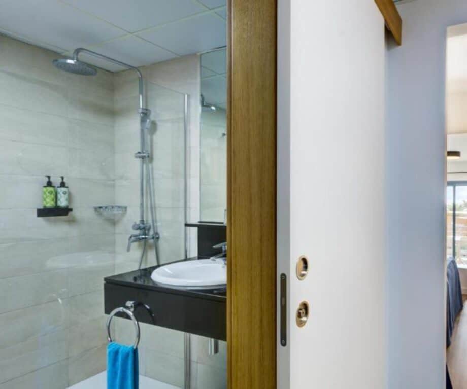 There’s a sliding door to the bathroom and a powerful walk-in shower that does exactly what you want it to after a hard training session: hot, quick and efficient. Towels are generous and the toiletries are straightforward and sports-friendly — enough to feel cleanly looked after without being fussy. Practical layout and decent water pressure make it one of those hotel bathrooms that quietly earns your affection.