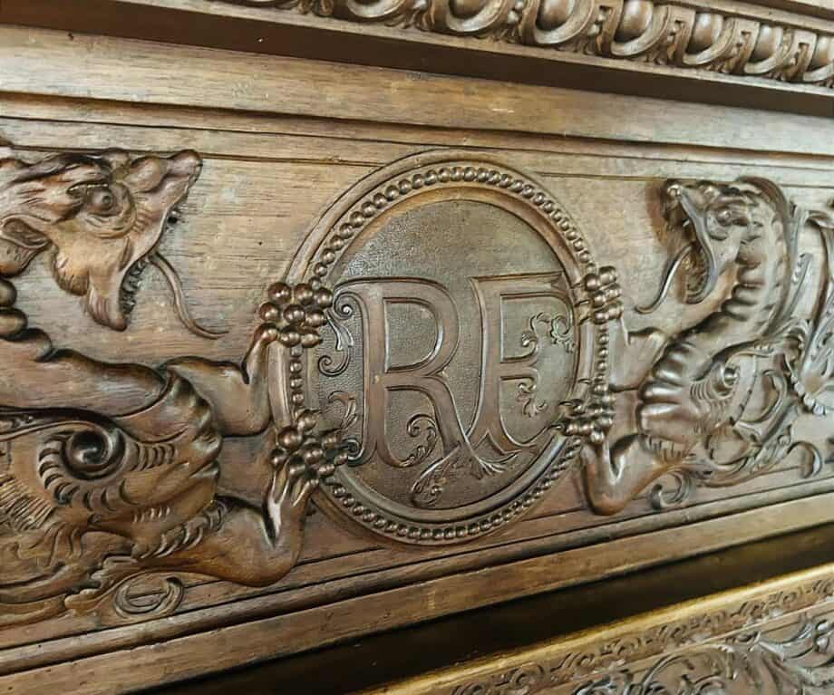 Ricardo Severo, Portuguese polymath – architect, engineer, political Republican and writer — designed the Palacete Severo in 1902, as a home for his Brazilian wife Francisca. In the library’s wood panels their initials are intertwined.