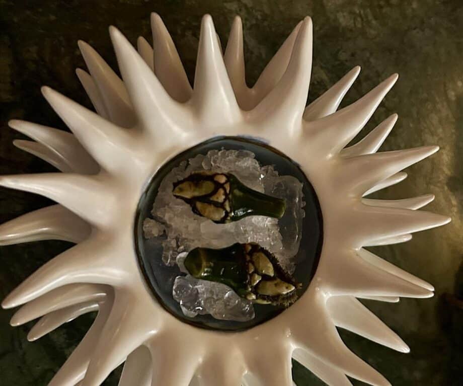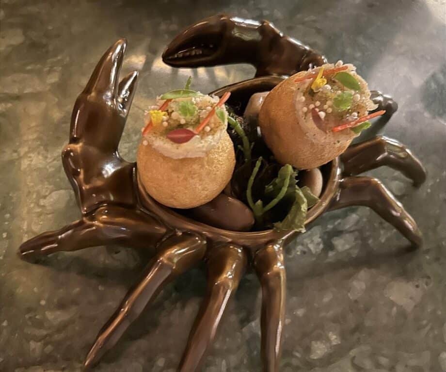 Spending time learning his craft along the Algarve, Bonito has a love of seafood. Crab, hake, tuna and those barnacles all precede Portuguese Steer.  Supreme beef, patiently raised on a rugged pasture terroir is served with tender twice-cooked dolls-house-sized vegetables.